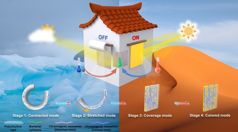 95. Smart curtains for spontaneous solar modulation via natural light-triggered deformable shading and chromogenic synergy